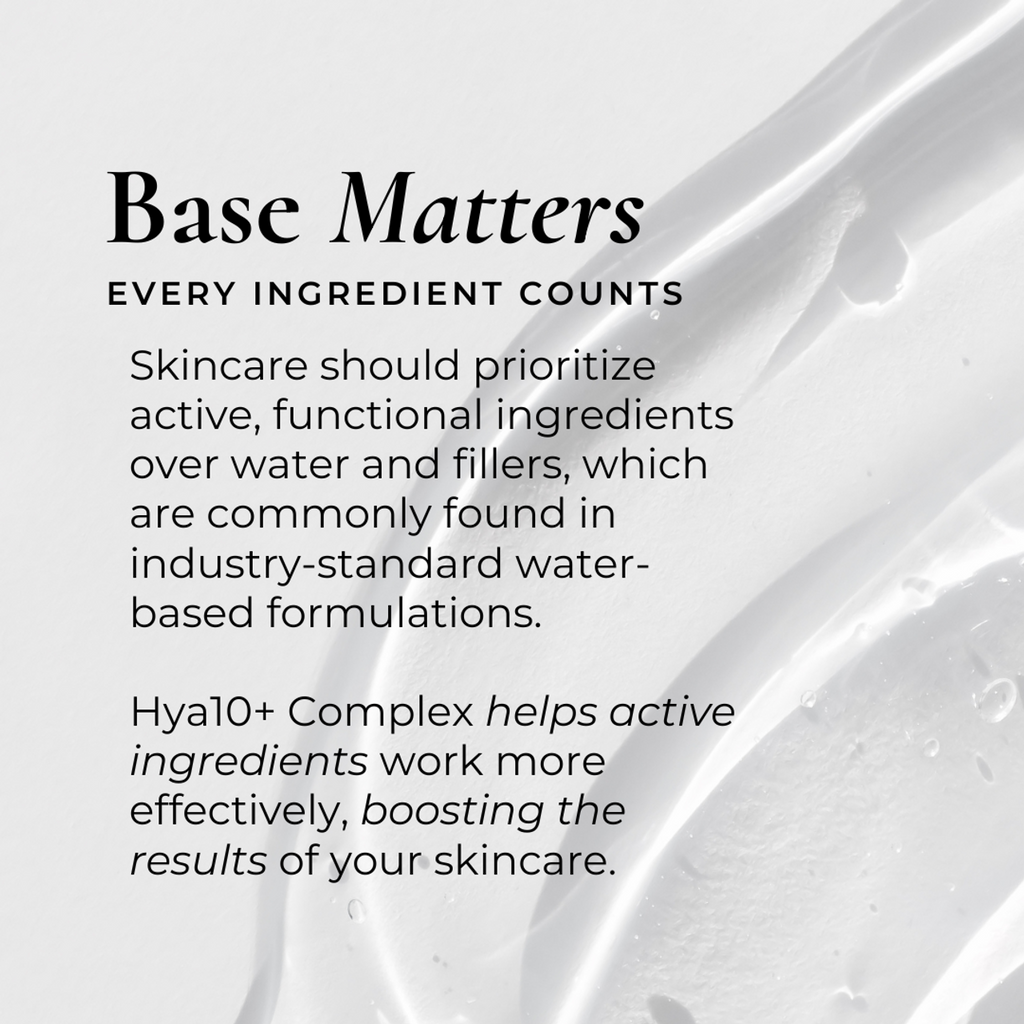 Concentrated formula features Hya10+ Complex, a science-driven bio-cellular base with 10 forms of hyaluronic acid boosted by a powerful bioferment, designed to work with skin's own cellular systems for enhanced hydration, nourishment, and recovery.