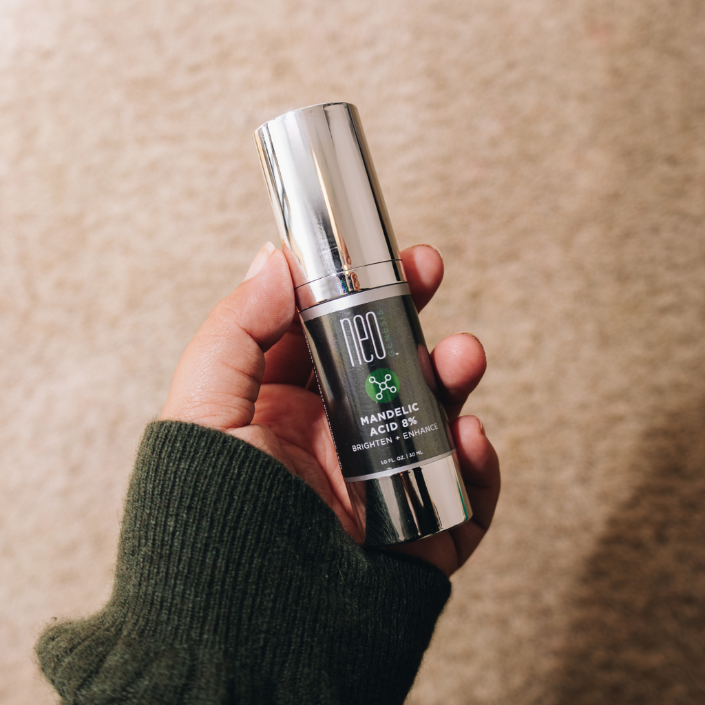 NeoGenesis Mandelic Acid 8% gently exfoliates and balances the skin. This multi-purpose serum assists in minimizing the appearance of blemishes, discoloration, scarring, and softening fine lines and wrinkles.